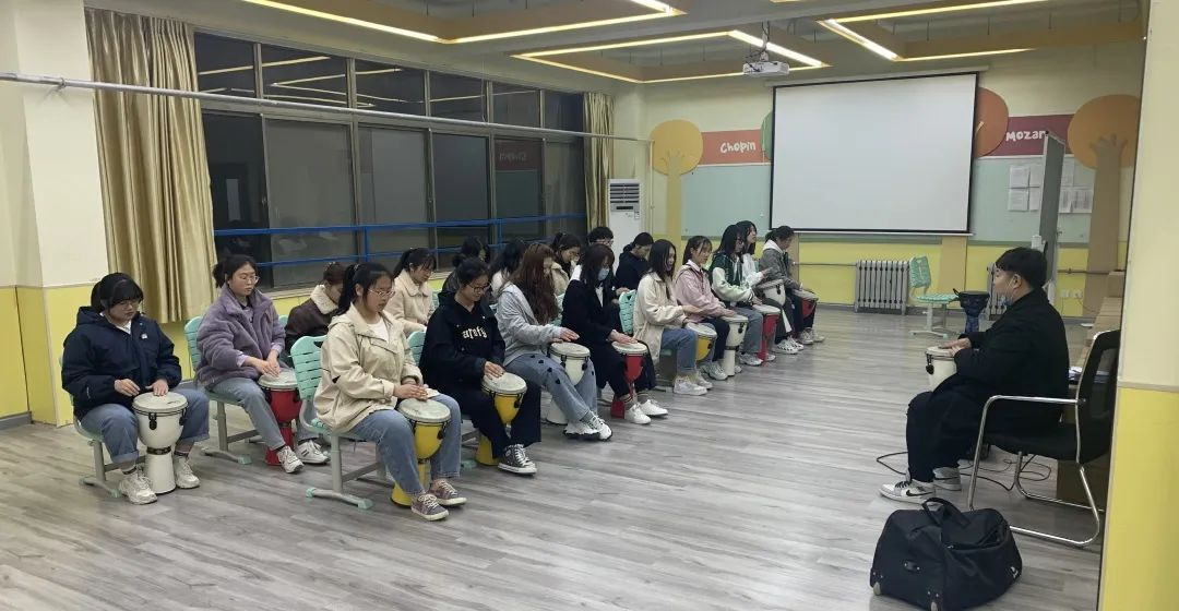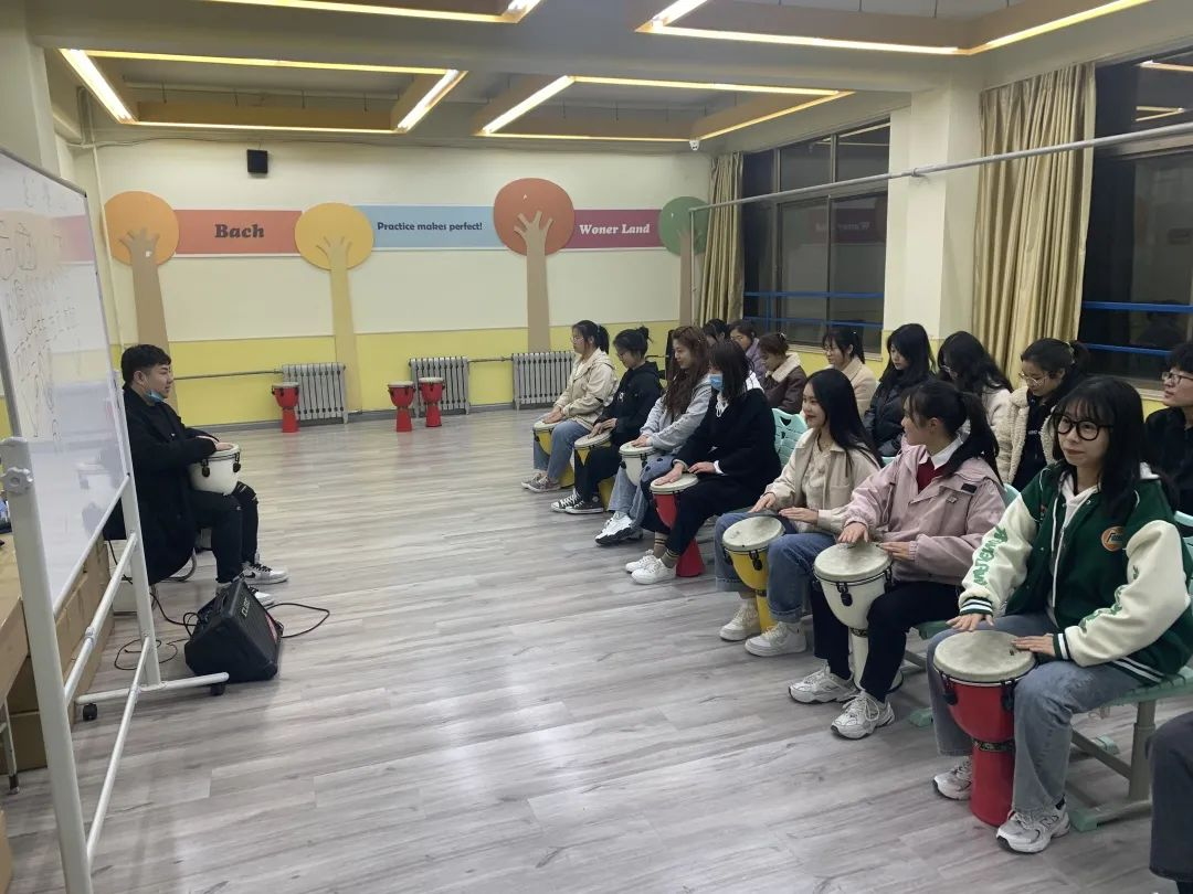 对于我们的上课的感受,那更是非常丰富了。非洲鼓的音色丰富,表演性很强,表达能力也很强,所以,我们既可以作为一种伴奏乐器,也可以作为主乐器,这种音域跨度大、律动感强的乐器非常适合学习,同时也为我们学习其他乐器打下了良好的基础。在非洲鼓学习的课堂上,缓解了我们平时学习的压力,释放不愉快的心情。我们在打鼓的过程中,收拾好了自己的心情。非洲鼓是个需要集体协作的乐器,我们全班齐心协力,高度配合完成了曲子,不仅仅有骄傲感,更是促进了我们的默契和团结。