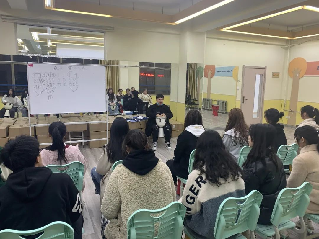 非洲鼓课程作为数字音乐班的特色课程,极大丰富了专业知识,对专业有了更深刻的了解。授课教师是毕业于乌克兰利先科国立音乐学院的张高远老师,老师耐心仔细,并把生动有趣的知识带给我们,我们也积极的配合。课程内容有《平凡之路》、《少年》、《送你一朵小红花》、《你笑起来真好看》,现在我们已经可以掌握基本的音色和节奏型。