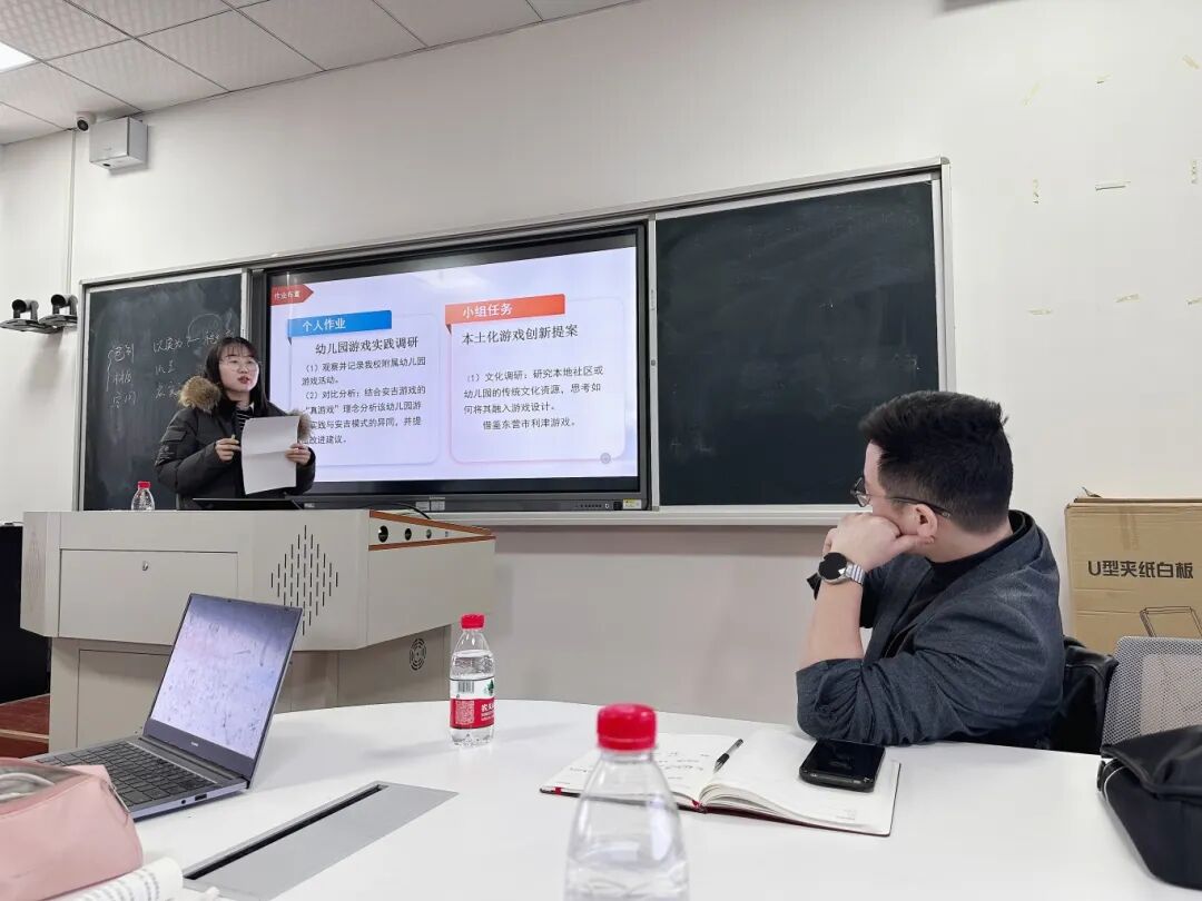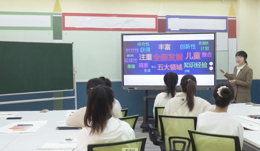 在课程设计上,吴丽敏老师始终思考:如何让理论落地,让课堂既专业又有趣?学生的反馈给了她重要启发。例如,在《幼儿园主题活动设计》单元中,学生常困惑于“如何平衡预设与生成”;在《游戏与课程融合》模块中,他们对“如何观察并支持幼儿的游戏学习”充满兴趣。这些真实问题成为了课堂设计的起点。尝试搭建“理论—案例—实践”三维支架,用思维导图厘清核心概念,精选幼儿园真实活动视频、幼儿游戏片段,引导学生分析讨论,并设计模拟情境任务,带领学生去到一线幼儿园,验证学习成果并让学习成果可视化。此外,特别注重“问题链”设计,例如在讲解“幼儿园课程评价”时,通过“评什么?—怎么评?—谁来评?”的递进提问,引导学生层层深入,培养批判性思维。