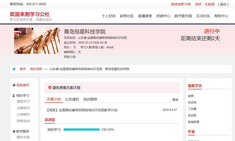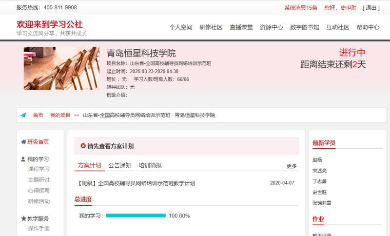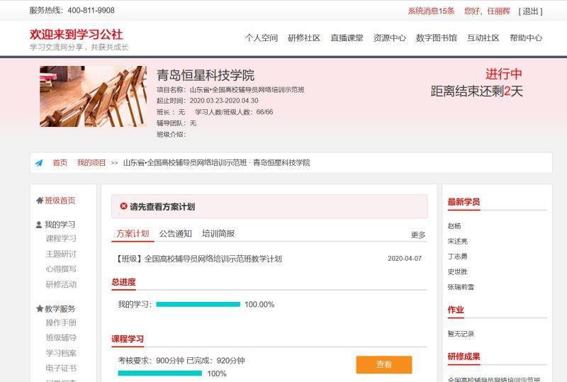 本次全国高校辅导员网络培训中,辅导员深刻认识疫情防控背景下加强思想政治教育工作的重要性、紧迫性,特别珍惜此次学习机会,通过培训掌握特殊形式下大学生思想特点和行为特征,更好地引导大学生理性认识和应对疫情带来的学习、生活和就业影响,增强学生爱党爱国意识和情感。不断提高辅导员做好新时代高校思想政治工作的能力素质,将立德树人的根本任务落实落地。