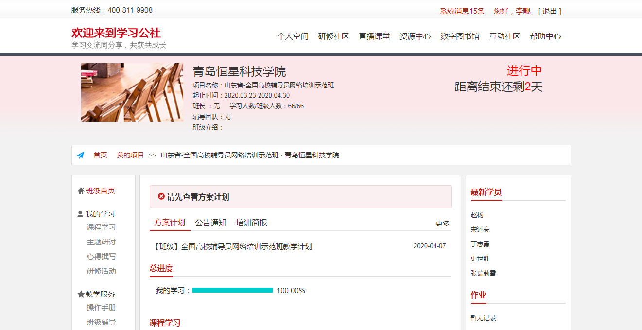 “高校辅导员是高校学生工作最基层的领导者、组织管理者和协调者,既是教与学的双向交流的信息员,又是学生学习生活的服务员”。 作为一名青年辅导员,我参加了全国高校辅导员网络培训,在为期一千多个小时的培训中,通过听专题讲座、分享、研讨等形式,围绕当前辅导员学生工作的难点、热点问题进行了学习与探讨。这让我认识到了辅导员作为高校教师队伍的一部分在育人工作中的重要作用,也让我进一步提高了对辅导员工作的理解和把握。
