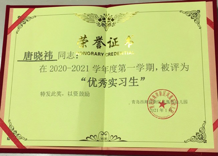 唐晓祎:幼儿园的实习结束,回顾这些日子,我学到了许多幼儿园的实际操作经验,这为我们以后的工作打下了坚实的基础,成为我宝贵的财富。在这段时间里,我尝试了许多人生不同的际遇,它教会了我执着,坚持,奋斗,理解和珍惜。这是我在学校里学不到的。