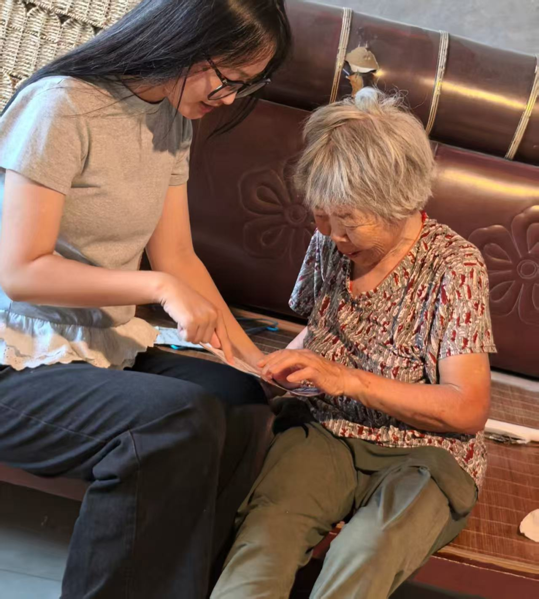乡村的老人,是岁月的见证者,也是实践团重点关怀的对象。实践团成员分成多个小组,挨家挨户走访村内老人。在炕头边、院坝里,志愿者们与老人促膝谈心,听他们讲述年轻时的奋斗故事,聊乡村几十年来的变迁。针对老年人使用智能设备存在的困难,志愿者们专门制作了图文并茂的操作指南,帮助老人学会视频通话、接打电话等实用技能。82 岁的张爷爷拉着队员的手感慨道:“你们来了,家里就热闹了,还教会我跟远方的重孙说话,真是比亲人还贴心!” 一声声问候、一次次陪伴,不仅缓解了老人们的孤独感,更让 “老吾老以及人之老” 的传统美德在青春的行动中得到传承。