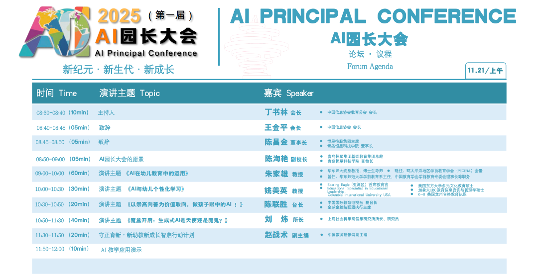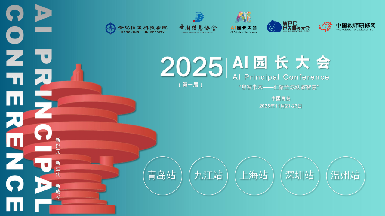 当今数字化时代人工智能(AI)正以前所未有的速度重塑着各个行业的发展格局,教育领域也面临着深刻的变革,学前教育更是迎来了前所未有的发展契机。AI技术在学前领域的应用潜力巨大,为开启学前教育的新时代提供了可能,也为学前教育带来更多的创新与活力。 为深入贯彻教育高质量发展理念,促进幼儿园办园质量与园长专业能力提升,加强国内外行业交流与合作,由中国信息协会教育分会牵头,联合WPC世界园长大会、青岛恒星科技学院、中国国际教育电视台以及中国教师研修网等单位共同组织举办的首届AI园长大会,将在本月21日-23日在青岛召开。