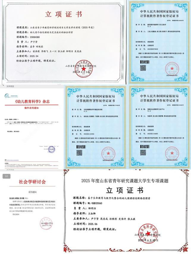 已发表知网论文2篇、省级课题2项,计算机软著3项国赛省赛荣誉拿到手软