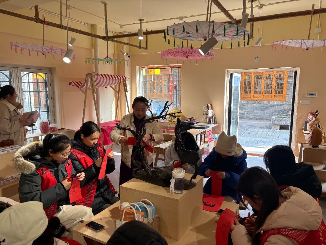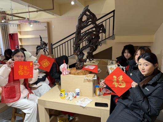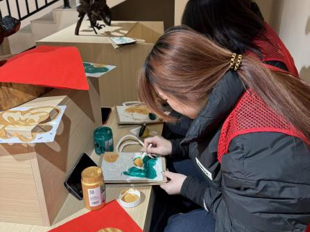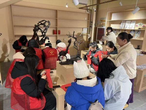 剪纸体验区更是热闹非凡。红色的彩纸在非遗传承人的剪刀下翻飞,眨眼间,栩栩如生的花鸟鱼虫、寓意吉祥的福字纹样便跃然纸上。同学们纷纷拿起剪刀,按照传承人教授的方法,先勾勒轮廓,再细致裁剪。虽然起初动作略显笨拙,剪出来的纹样也不够规整,但大家毫不气馁,反复请教、不断练习。当看到自己亲手剪出的作品时,脸上都洋溢着满满的成就感。剪纸不仅锻炼了同学们的动手能力和耐心,更让大家在对称与镂空的艺术中,读懂了中国传统文化中“圆满”“吉祥”的美好寓意。
