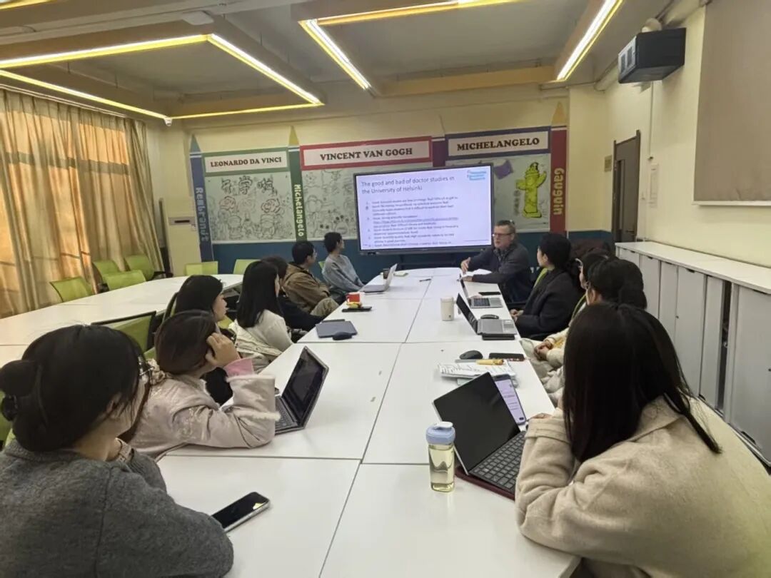 为落实 631 工程中培养高水平恒星人才队伍(名师)的目标,座谈会专门就教师赴赫尔辛基大学攻读博士学位的相关事宜进行了详细交流。Jyrki 教授介绍了赫尔辛基大学博士招生的基本要求、申请流程和时间节点,探讨了联合培养博士的可能性,为学院教师提供更灵活的深造途径。这一安排为学院教师专业发展搭建了国际化平台,有助于提升师资队伍的整体水平。
